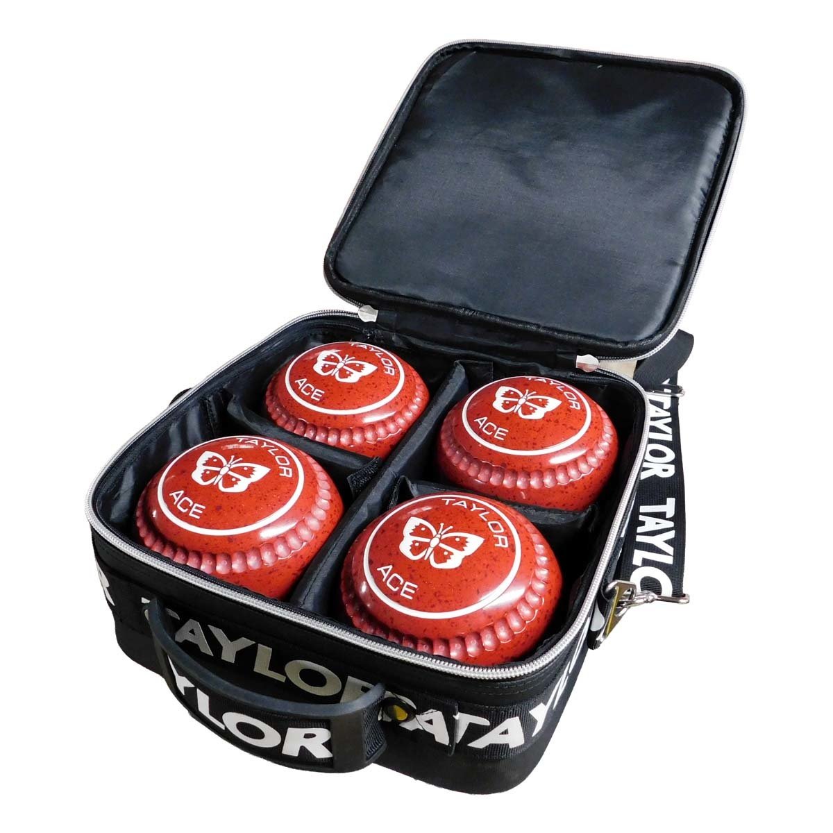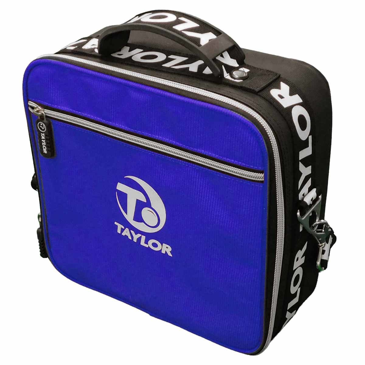A modern durable case designed to carry 4 bowls up to a size 5. Featuring a sturdy detachable shoulder strap for easy transportation. Now available in Black, Blue and Silver with the Taylor logo on the front. Note that bowls size 3 and above are best placed on their side to fit into the bag more easily. Dimensions: W28cm x H28cm x D12cm